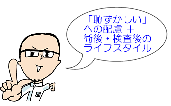 ◇ 恥ずかしい」への配慮と術後・検査後のライフスタイルまで考えた治療
